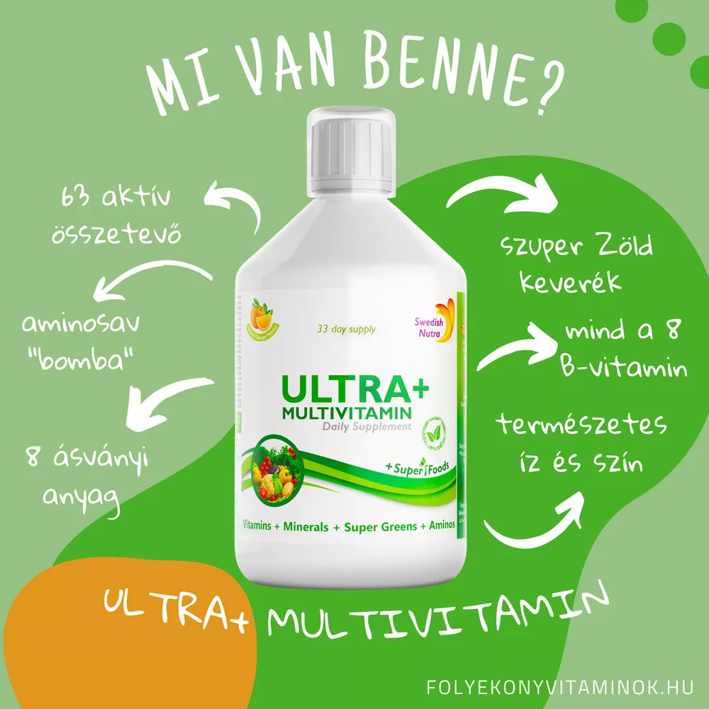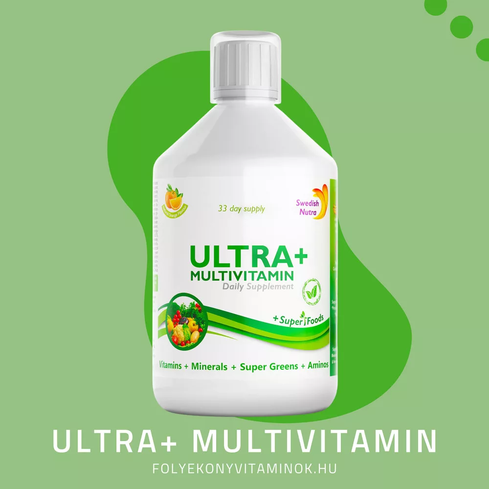 A Swedish Nutra Ultra+ folyékony multivitamin egyedülálló, több mint 30 aktív hatóanyagának, köztük az antioxidánsoknak és szuperélelmiszereknek köszönhetően.