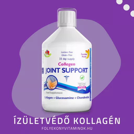 A kollagén a kötőszövetek fő alkotóeleme és az életkor előrehaladtával egyre kevesebb termelődik belőle, ami számos negatív egészségügyi következménnyel járhat. Többek között porckopással és ízületi fájdalommal. A Swedish Nutra Joint Support tartalmaz a glikozaminoglikán előállításához elengedhetetlen glükozamint, amely a porc- és egyéb testszövetek képződéséhez és regenációjához szükséges. Kondroitin-szulfát tartalma segít a porcnövekedés stimulációjában, a degeneratív folyamatok lassításában, valamint gyulladáscsökkentő és fájdalomcsillapító hatású. Rendkívüli hatékony tápanyagai egymást támogatva gondoskodnak a csontok, porcok, inak és izmok egészségéről. Az ízületvédő folyékony kollagén ráadásul bővelkedik többféle esszenciális aminosavban, melyek nélkülözhetetlenek az inak és ízületek egészségének megőrzése szempontjából.